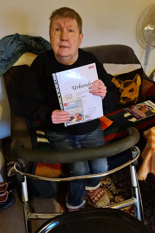 Die Landesbevollmächtigte Heike Sommerauer-Dörzapf nutzte diesen Anlaß, um die langjährige Ortsvorsitzende Heidegarde Busch mit einer Urkunde und einem Blumenstrauß für ihre 35-jährige Mitgliedschaft beim SoVD zu ehren.